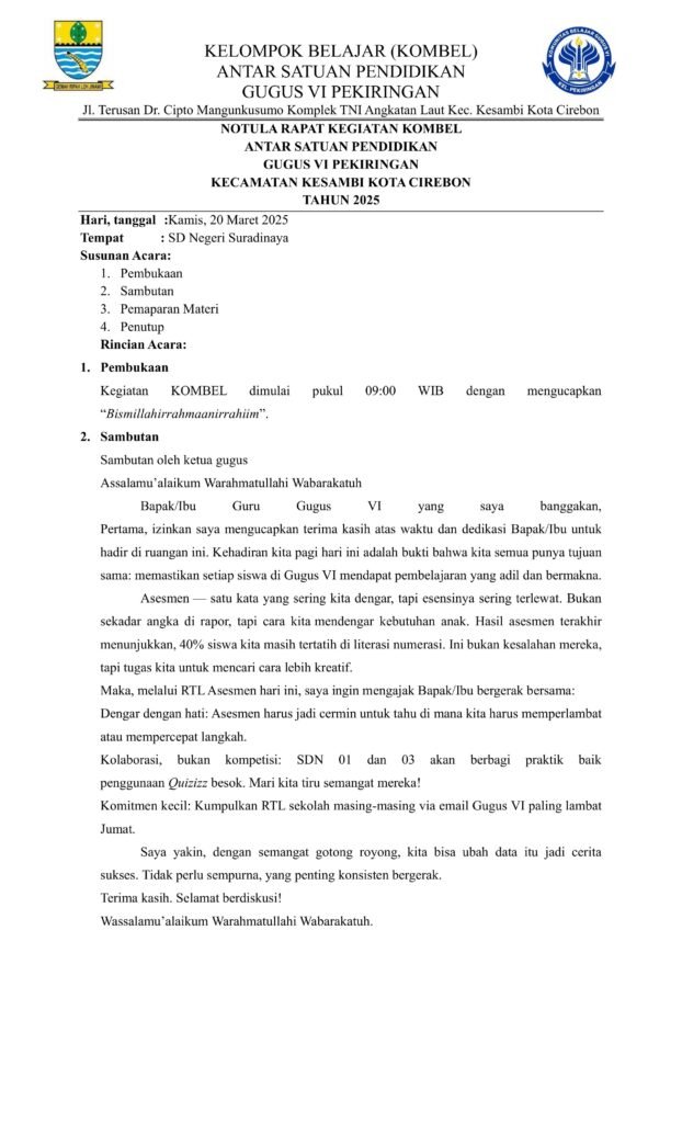 KEGIATAN KOMBEL GUGUS VI PEKIRINGAN Farkhani Azhari, S.Pd KKG Gugus 6 Kesambi November 20, 2025November 20, 2025 0 Komentar Notula Rapat Kegiatan 2 Kegiatan Kombel Gugus VI Pekiringan Ke-1 Kegiatan Kombel Gugus VI Pekiringa Ke-2 Kegiatan Kombel Gugus VI Pekiringa Ke-3 Kegiatan Kombel Gugus VI Pekiringa Ke-4 hubungi kami: 085314662156 Laman: 1 2