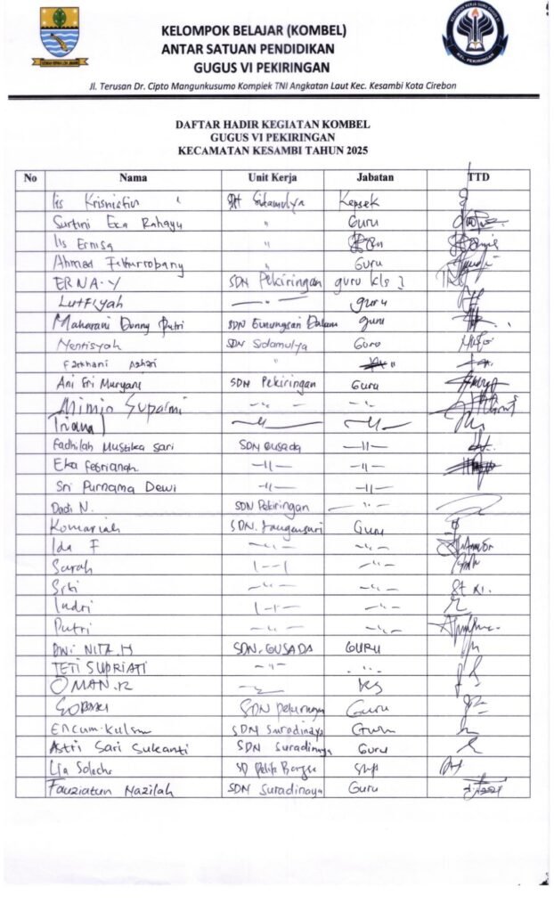 KEGIATAN KOMBEL GUGUS VI PEKIRINGAN Farkhani Azhari, S.Pd KKG Gugus 6 Kesambi November 19, 2025November 20, 2025 0 Komentar Notula Rapat Kegiatan 1 Kombel Gugus VI Pekiringan Hubungi kami: 08531462156 Kegiatan Kombel Gugus VI Pekiringan Ke-1 Kegiatan Kombel Gugus VI Pekiringan Ke-2 Kegiatan Kombel Gugus VI Pekiringan Ke-3 Kegiatan Kombel Gugus VI Pekiringan Ke-4 Laman: 1 2