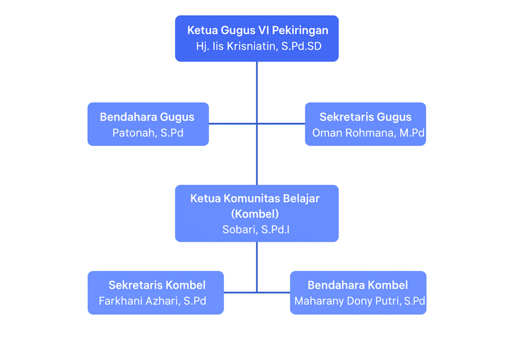 STRUKTUR KEPENGURUSAN KOMBEL GUGUS VI PEKIRINGAN Farkhani Azhari, S.Pd KKG Gugus 6 Kesambi November 19, 2025November 20, 2025 0 Komentar STRUKTUR KEPENGURUSAN KOMBEL GUGUS VI PEKIRINGAN Struktur lengkap organisasi pada Kombel Gugus VI Pekiringan adalah sebagai berikut: Kegiatan Kombel Gugus VI Pekiringan Ke-1 Kegiatan Kombel Gugus VI Pekiringa Ke-2 Kegiatan Kombel Gugus VI Pekiringa Ke-3 Kegiatan Kombel Gugus VI Pekiringa Ke-4 Hubungi kami: 08531462156